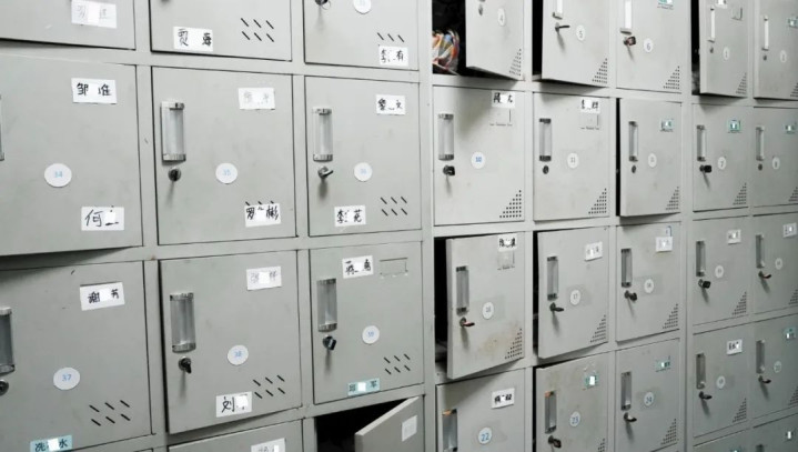 透析室门口的储物间,工人离岗透析时,把物品存放在里面。柜门上的人名换了一波又一波。新京报记者 吴瑜 摄